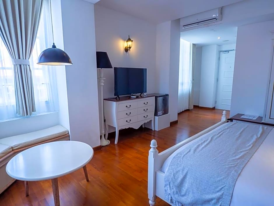 PREMIER ROOM is 334 square feet and includes a queen-size bed 150-154 width plus cable tv and safe.